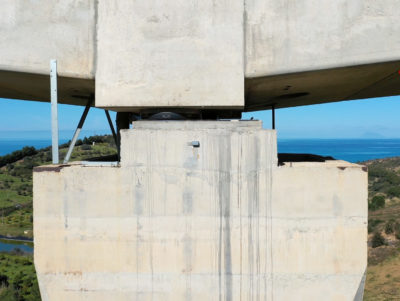 Come si può agevolmente rilevare dalla documentazione video – fotografica allegata, i basamenti superiori in calcestruzzo su cui poggia il viadotto e l’intero asse viario risultano fortemente “disassati”, dunque fuoriusciti e disallineati rispetto ai pilastri portanti del viadotto stesso, con la concreta possibilità di uno “scarrellamento” del singolo plinto rispetto all’appoggio ed all’asse viario.