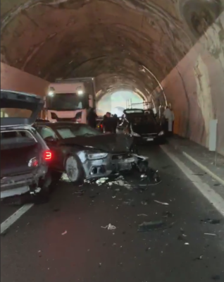 Un tremendo tamponamento a catena che, a quanto pare e per fortuna, ha coinvolto soltanto alcune persone rimaste lievemente ferite.