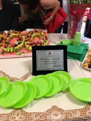Per l’occasione tutta la seconda circoscrizione si è stretta attorno a questa illustre concittadina, dedicandole una targa commemorativa e allestendo una piccola festicciola nella sede comunale di via S. Ciro, con una bella torta alla frutta a forma di numero cento.