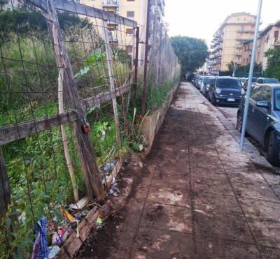 Dopo le segnalazione di molti cittadini della zona, abbiamo provveduto a segnalare una vergognosa discarica di oltre 100 metri che si era creata tra via Adolfo Holm e via Rinaldo Montuoro, a pochi metri dalla rotonda di via Leonardo Da Vinci, e che impediva completamente il transito dei pedoni sul marciapiede – dichiara il capogruppo della Lega, Igor Gelarda -. Una zona abbandonata da tempo dove, insieme a ingombranti e sacchetti, anche l’erbaccia era diventata alta.