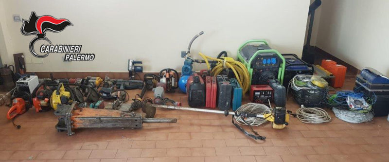 Trovati sul luogo molti oggetti utilizzati per l’idraulica, il giardinaggio e l’edilizia: flex, motoseghe, martelletti elettrici, aspirapolveri, gruppi elettrogeni, autoclavi, smerigliatrici, pompe sommerse e tagliasiepi.