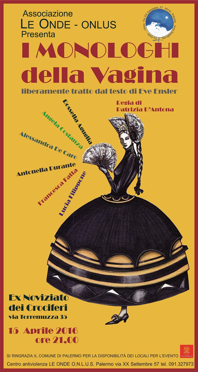 PALERMO – Tratta dal testo di Eve Ensler, debutta all’Ex Noviziato dei Crociferi, a Palermo, l’opera “I monologhi della vagina”, venerdì 15 aprile alle ore 21.