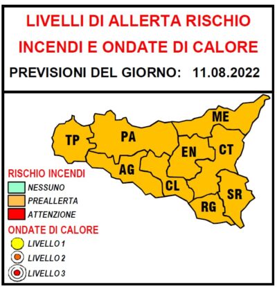 SICILIA – Livello di preallerta rischio incendi su tutta l’Isola, domani 11 agosto, secondo quanto comunicato dalla Protezione civile regionale.