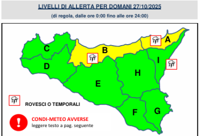 La Protezione civile regionale ha comunicato allerta gialla su Messina e Palermo.