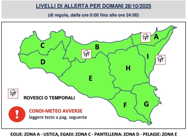 Le uniche precipitazioni previste dovrebbero abbattersi nel territorio di Messina, nel corso dell’intera giornata. La Protezione civile regionale comunque non ha diramato alcuna allerta meteo.