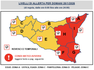 SICILIA – Non può piovere per sempre dice un detto, beh, domani tuttavia continuerà a piovere (e anche tanto). È allerta arancione – e rossa nella parte Orientale – per la Sicilia determinando marcato maltempo con rovesci e temporali.