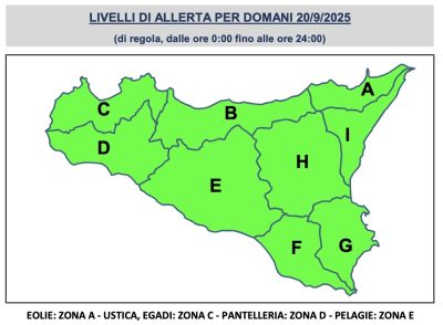 Le previsioni meteo degli esperti di 3bMeteo, che hanno riassunto così la giornata di domani, sabato 20 settembre: “Un campo di alte pressioni abbraccia la Regione garantendo tempo stabile ed assolato ovunque. Nello specifico su litorale tirrenico, litorale ionico, litorale meridionale e zone internecieli in prevalenza sereni o poco nuvolosi per l’intera giornata; sull’Appennino cieli in prevalenza sereni o poco nuvolosi per l’intera giornata, salvo la presenza di qualche addensamento serale. Venti deboli dai quadranti nord-orientali in attenuazione; Zero termico nell’intorno di 4650 metri. Basso Tirreno poco mosso; Canale da poco mosso a mosso; Mare di Sicilia mosso”.