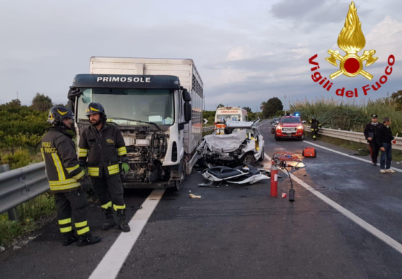 FRANCOFONTE – Tragico incidente stradale sulla strada statale 194 “Ragusana”, nella porzione di strada all’interno del territorio comunale di Francofonte, nel Siracusano, tra un’auto e un mezzo pesante.